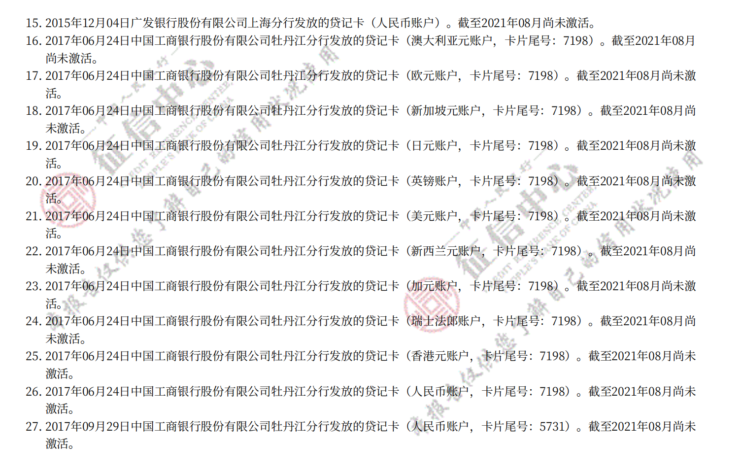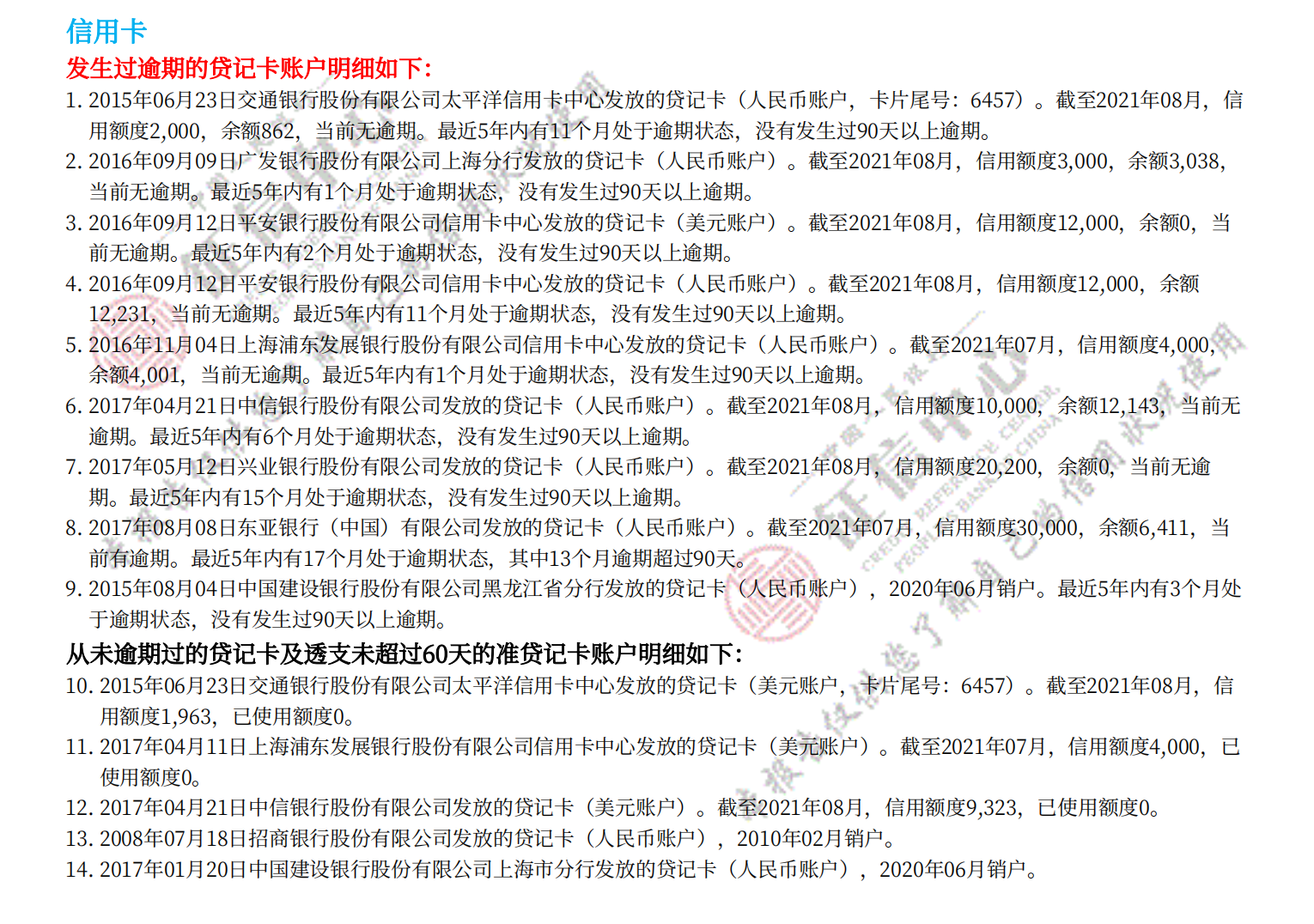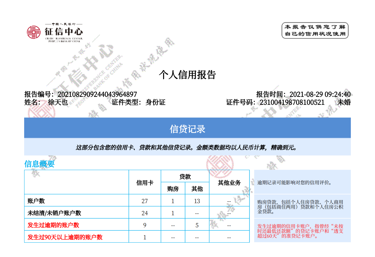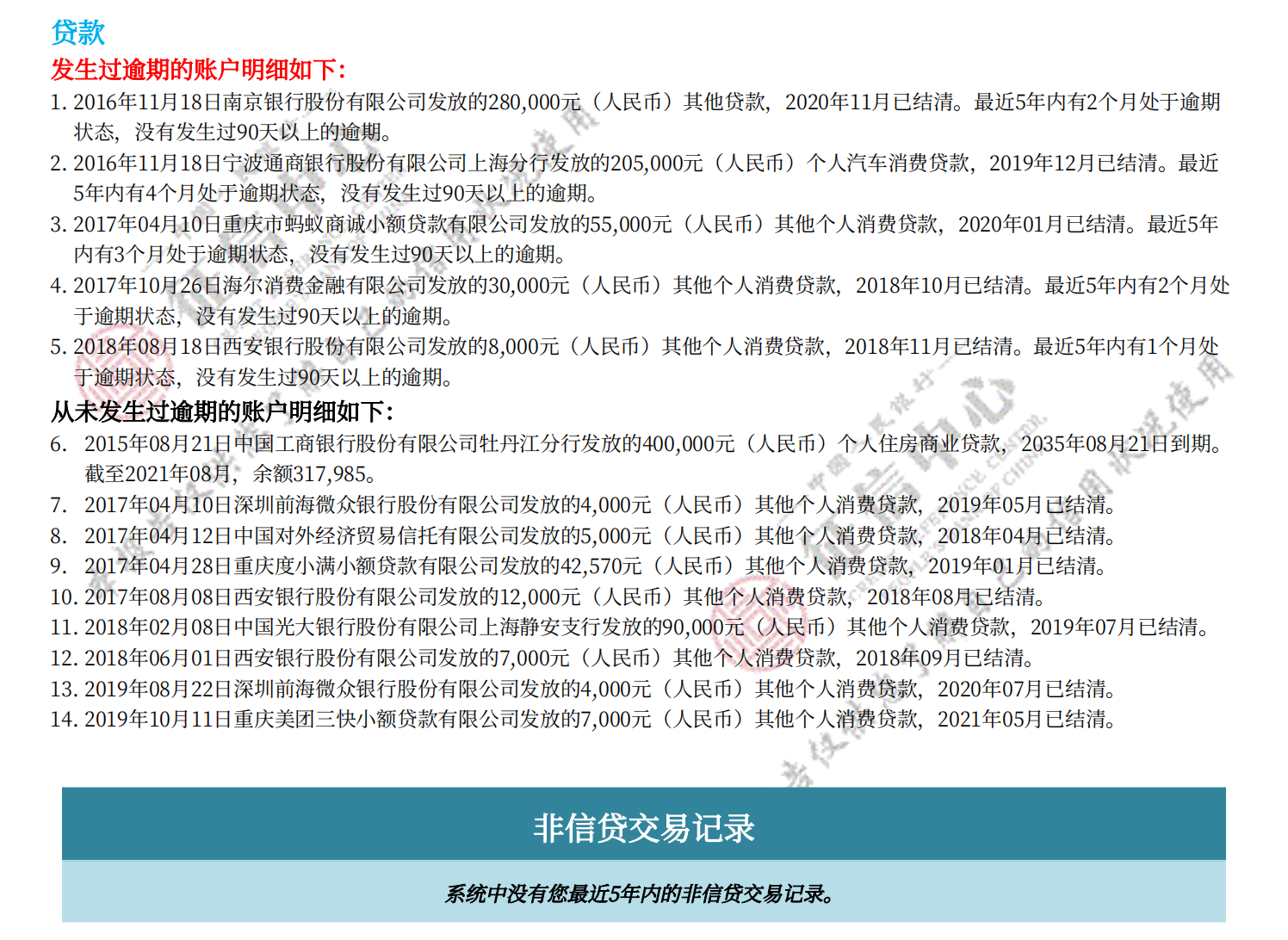 人民银行详细版征信记录,包括网贷、房贷、车贷、信用卡等